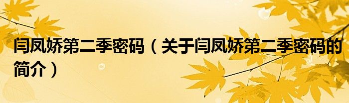 本文關(guān)于閆鳳嬌第二季密碼的簡(jiǎn)介就講解完畢,希望對(duì)大家有所幫助。