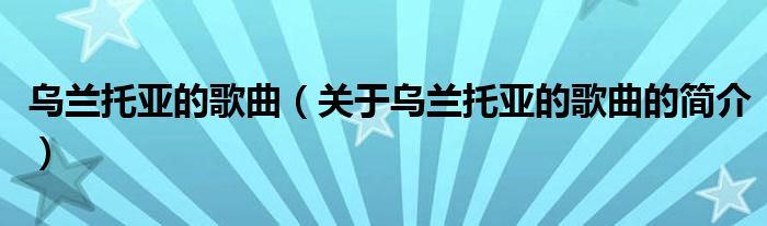 本文關(guān)于烏蘭托亞的歌曲的簡(jiǎn)介就講解完畢,希望對(duì)大家有所幫助。