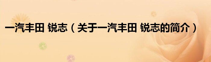 本文關于一汽豐田 銳志的簡介就講解完畢,希望對大家有所幫助。