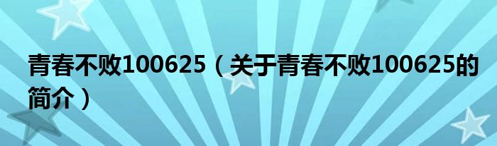 本文關(guān)于青春不敗100625的簡(jiǎn)介就講解完畢,希望對(duì)大家有所幫助。