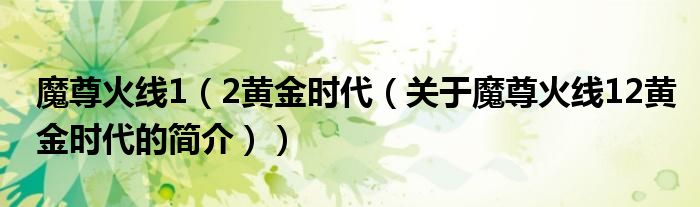 本文關于魔尊火線1 2黃金時代的簡介就講解完畢,希望對大家有所幫助。