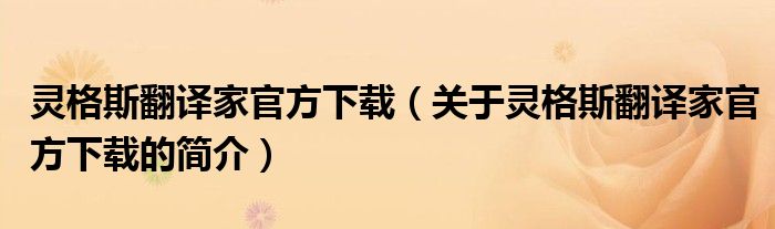 本文關于靈格斯翻譯家官方下載的簡介就講解完畢,希望對大家有所幫助。
