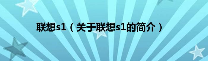 大家好,聯想s1,關于聯想s1的簡介很多人還不知道,現在讓我們一起來看看吧!