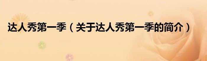 大家好,達(dá)人秀第一季,關(guān)于達(dá)人秀第一季的簡介很多人還不知道,現(xiàn)在讓我們一起來看看吧!