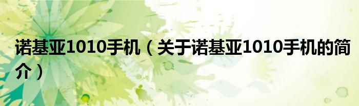 本文關于諾基亞1010手機的簡介就講解完畢,希望對大家有所幫助。