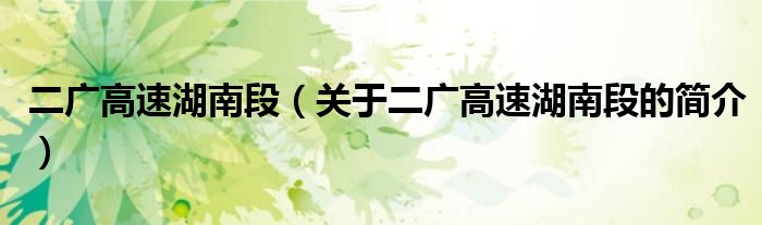 本文關(guān)于二廣高速湖南段的簡(jiǎn)介就講解完畢,希望對(duì)大家有所幫助。