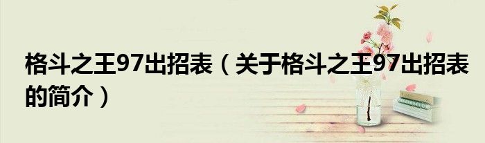 本文關于格斗之王97出招表的簡介就講解完畢,希望對大家有所幫助。