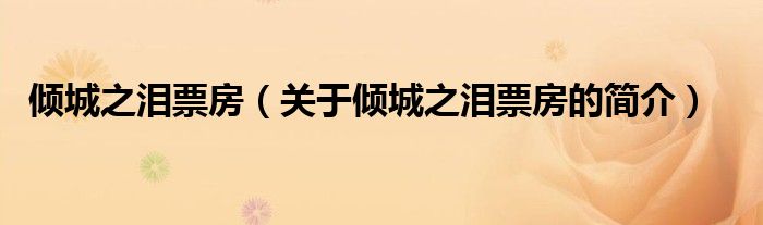大家好,傾城之淚票房,關于傾城之淚票房的簡介很多人還不知道,現在讓我們一起來看看吧!