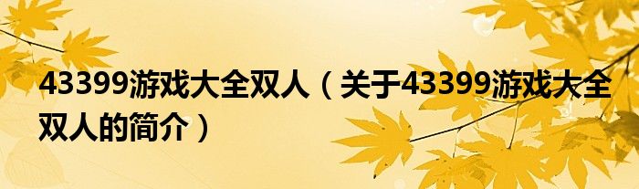 本文關(guān)于43399游戲大全雙人的簡(jiǎn)介就講解完畢,希望對(duì)大家有所幫助。