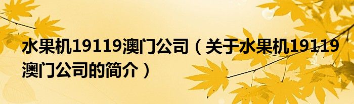 本文關(guān)于水果機(jī)19119澳門公司的簡介就講解完畢,希望對大家有所幫助。