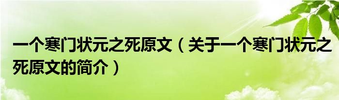 本文關于一個寒門狀元之死原文的簡介就講解完畢,希望對大家有所幫助。