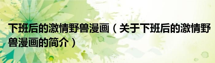 本文關(guān)于下班后的激情野獸漫畫的簡介就講解完畢,希望對大家有所幫助。