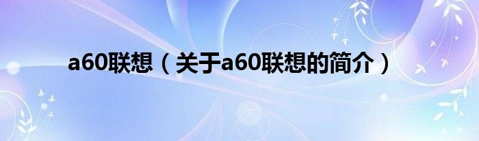 大家好,a60聯(lián)想,關(guān)于a60聯(lián)想的簡介很多人還不知道,現(xiàn)在讓我們一起來看看吧!
