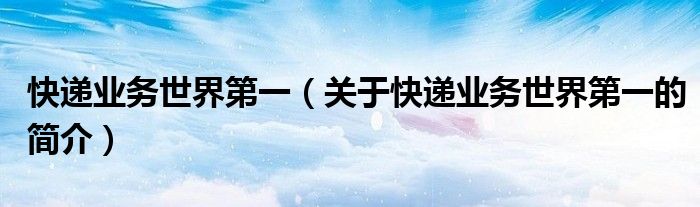 本文關于快遞業務世界第一的簡介就講解完畢,希望對大家有所幫助。