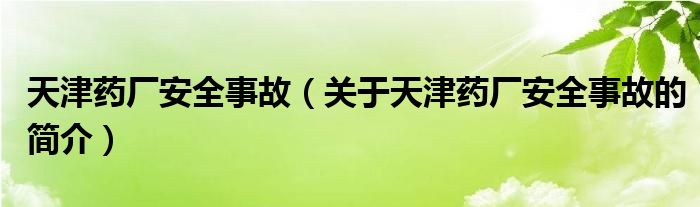 本文關于天津藥廠安全事故的簡介就講解完畢,希望對大家有所幫助。