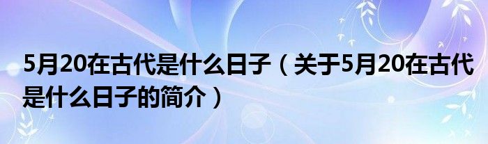 大家好,5月20在古代是什么日子,關于5月20在古代是什么日子的簡介很多人還不知道,現在讓我們一起來看看吧!