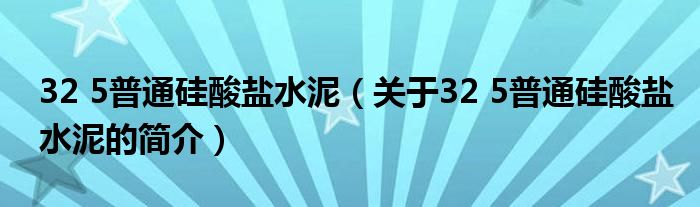 本文關于32 5普通硅酸鹽水泥的簡介就講解完畢,希望對大家有所幫助。