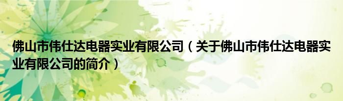 本文關于佛山市偉仕達電器實業有限公司的簡介就講解完畢,希望對大家有所幫助。