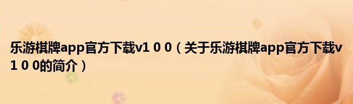 本文關于樂游棋牌app官方下載v1 0 0的簡介就講解完畢,希望對大家有所幫助。