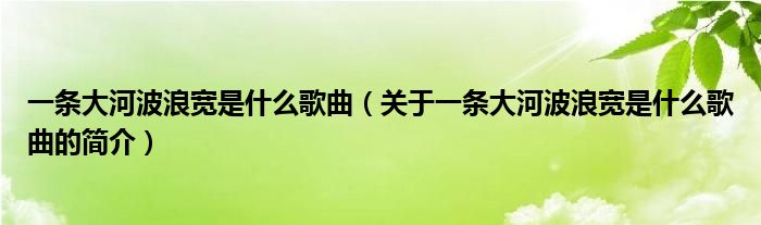 大家好,一條大河波浪寬是什么歌曲,關于一條大河波浪寬是什么歌曲的簡介很多人還不知道,現在讓我們一起來看看吧!