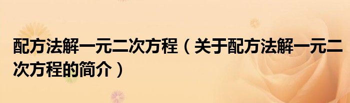 本文關(guān)于配方法解一元二次方程的簡介就講解完畢,希望對大家有所幫助。