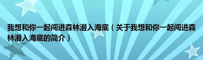 本文關于我想和你一起闖進森林潛入海底的簡介就講解完畢,希望對大家有所幫助。