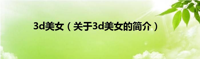 大家好,3d美女,關(guān)于3d美女的簡介很多人還不知道,現(xiàn)在讓我們一起來看看吧!