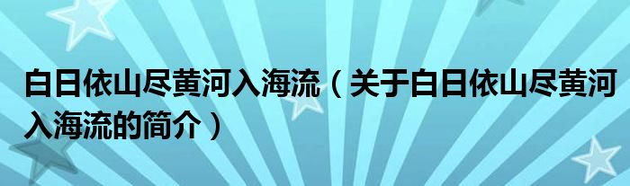 本文關于白日依山盡黃河入海流的簡介就講解完畢,希望對大家有所幫助。