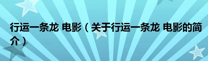 本文關(guān)于行運(yùn)一條龍 電影的簡(jiǎn)介就講解完畢,希望對(duì)大家有所幫助。