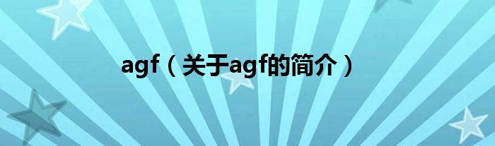 本文關(guān)于agf的簡(jiǎn)介就講解完畢,希望對(duì)大家有所幫助。
