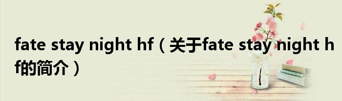 本文關(guān)于fate stay night hf的簡介就講解完畢,希望對大家有所幫助。