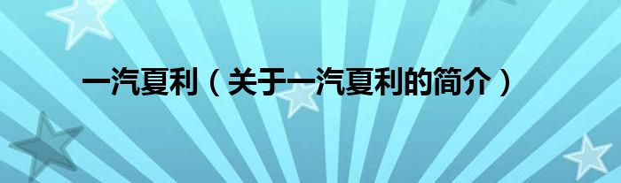 本文關于一汽夏利的簡介就講解完畢,希望對大家有所幫助。