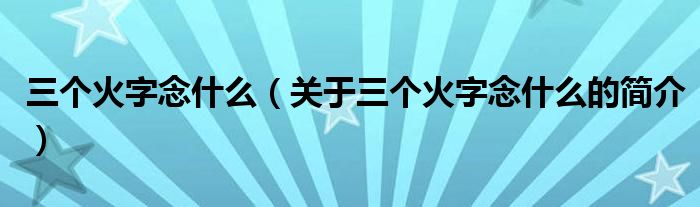 本文關于三個火字念什么的簡介就講解完畢,希望對大家有所幫助。