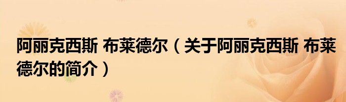 大家好,阿麗克西斯 布萊德爾,關于阿麗克西斯 布萊德爾的簡介很多人還不知道,現在讓我們一起來看看吧!