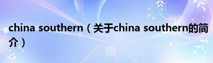 本文關于china southern的簡介就講解完畢,希望對大家有所幫助。
