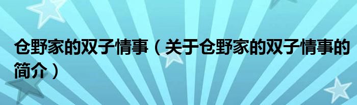 本文關(guān)于倉野家的雙子情事的簡介就講解完畢,希望對大家有所幫助。