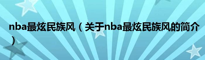 本文關于nba最炫民族風的簡介就講解完畢,希望對大家有所幫助。