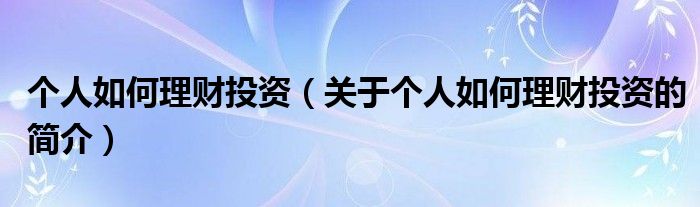 本文關(guān)于個(gè)人如何理財(cái)投資的簡(jiǎn)介就講解完畢,希望對(duì)大家有所幫助。