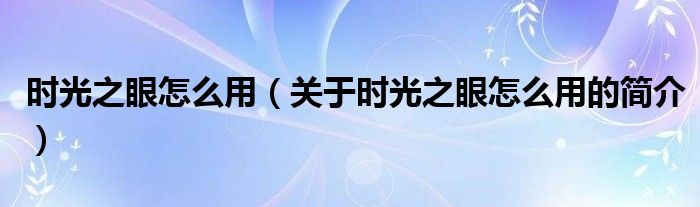 本文關于時光之眼怎么用的簡介就講解完畢,希望對大家有所幫助。