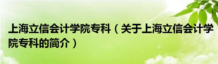 本文關(guān)于上海立信會計學(xué)院專科的簡介就講解完畢,希望對大家有所幫助。