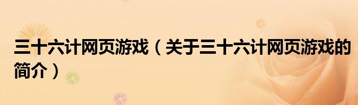 三十六計網頁游戲(關于三十六計網頁游戲的簡介)