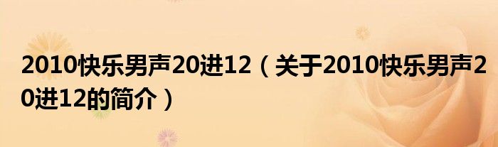 大家好,2010快樂男聲20進12,關于2010快樂男聲20進12的簡介很多人還不知道,現在讓我們一起來看看吧!