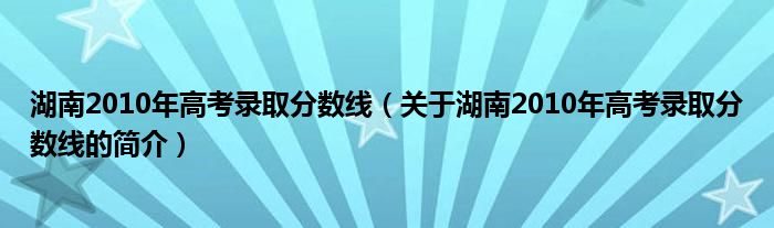 本文關于湖南2010年高考錄取分數線的簡介就講解完畢,希望對大家有所幫助。
