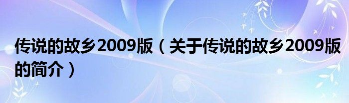 本文關于傳說的故鄉(xiāng)2009版的簡介就講解完畢,希望對大家有所幫助。