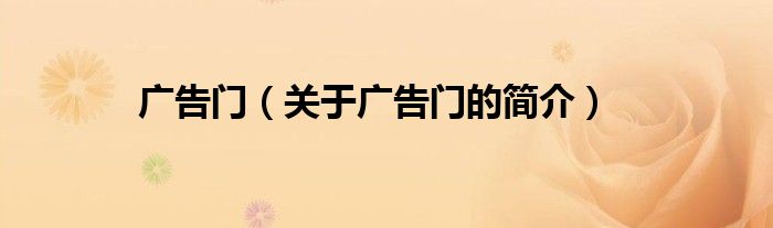 大家好,廣告門,關于廣告門的簡介很多人還不知道,現在讓我們一起來看看吧!