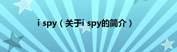 本文關(guān)于i spy的簡(jiǎn)介就講解完畢,希望對(duì)大家有所幫助。