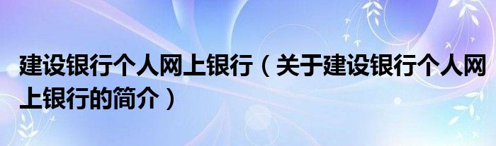 本文關于建設銀行個人網上銀行的簡介就講解完畢,希望對大家有所幫助。