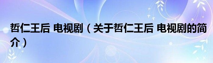本文關(guān)于哲仁王后 電視劇的簡介就講解完畢,希望對大家有所幫助。