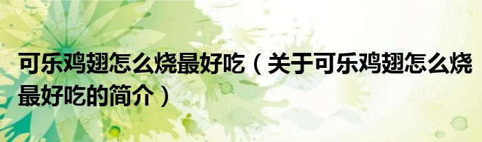 本文關于可樂雞翅怎么燒最好吃的簡介就講解完畢,希望對大家有所幫助。
