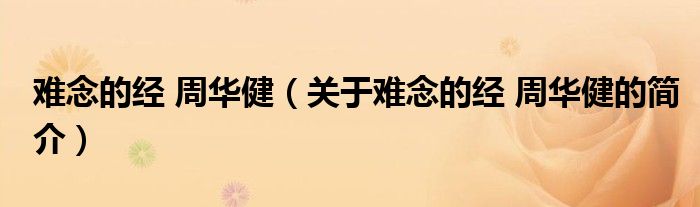 大家好,難念的經(jīng) 周華健,關(guān)于難念的經(jīng) 周華健的簡(jiǎn)介很多人還不知道,現(xiàn)在讓我們一起來(lái)看看吧!